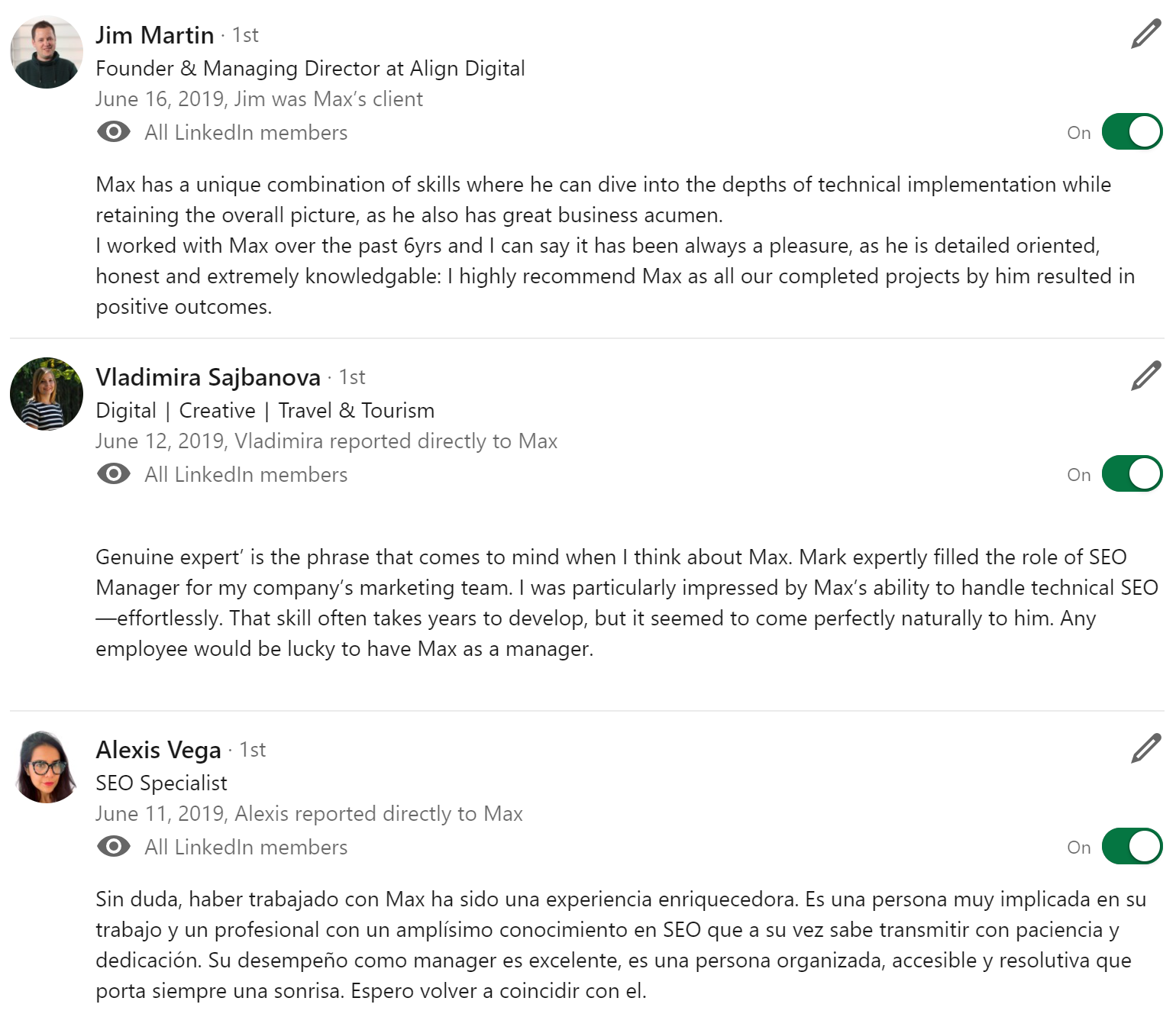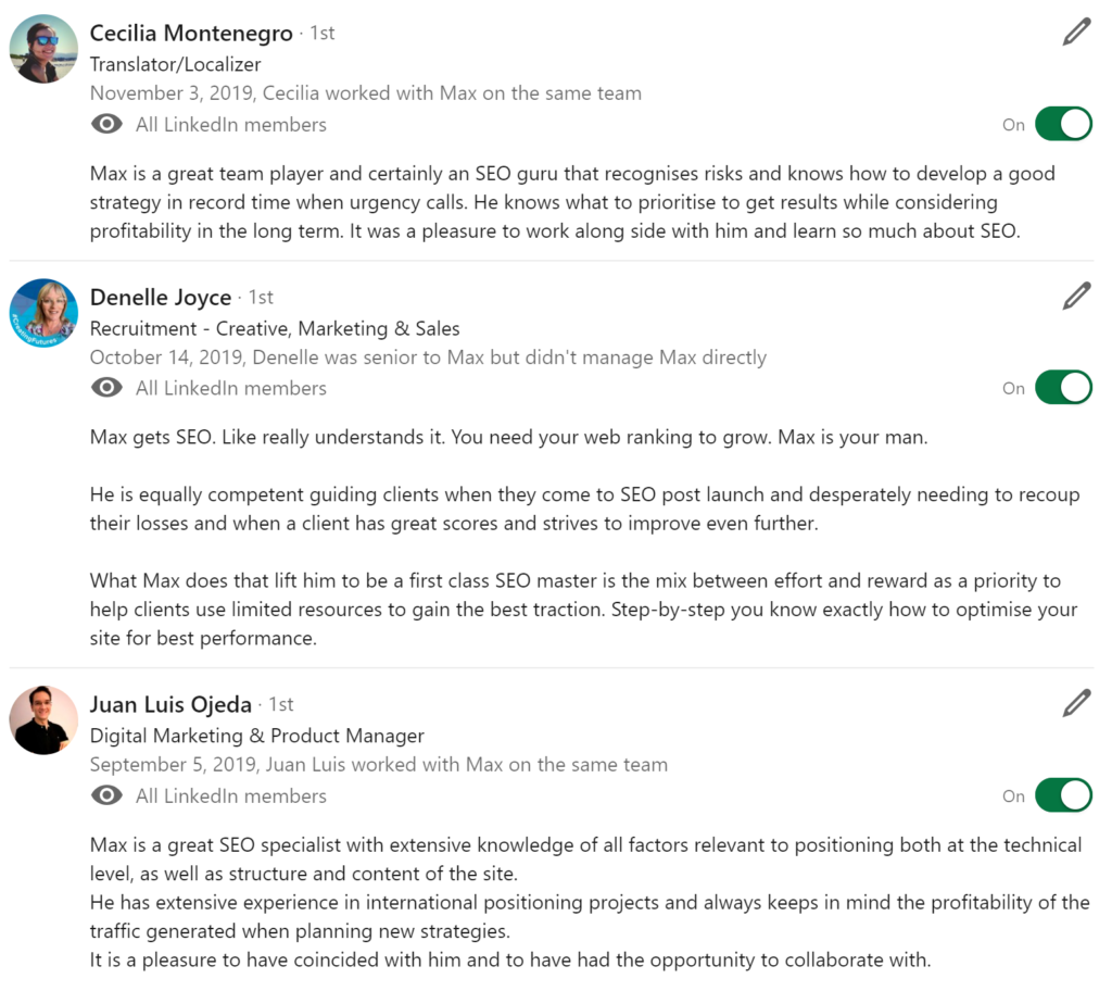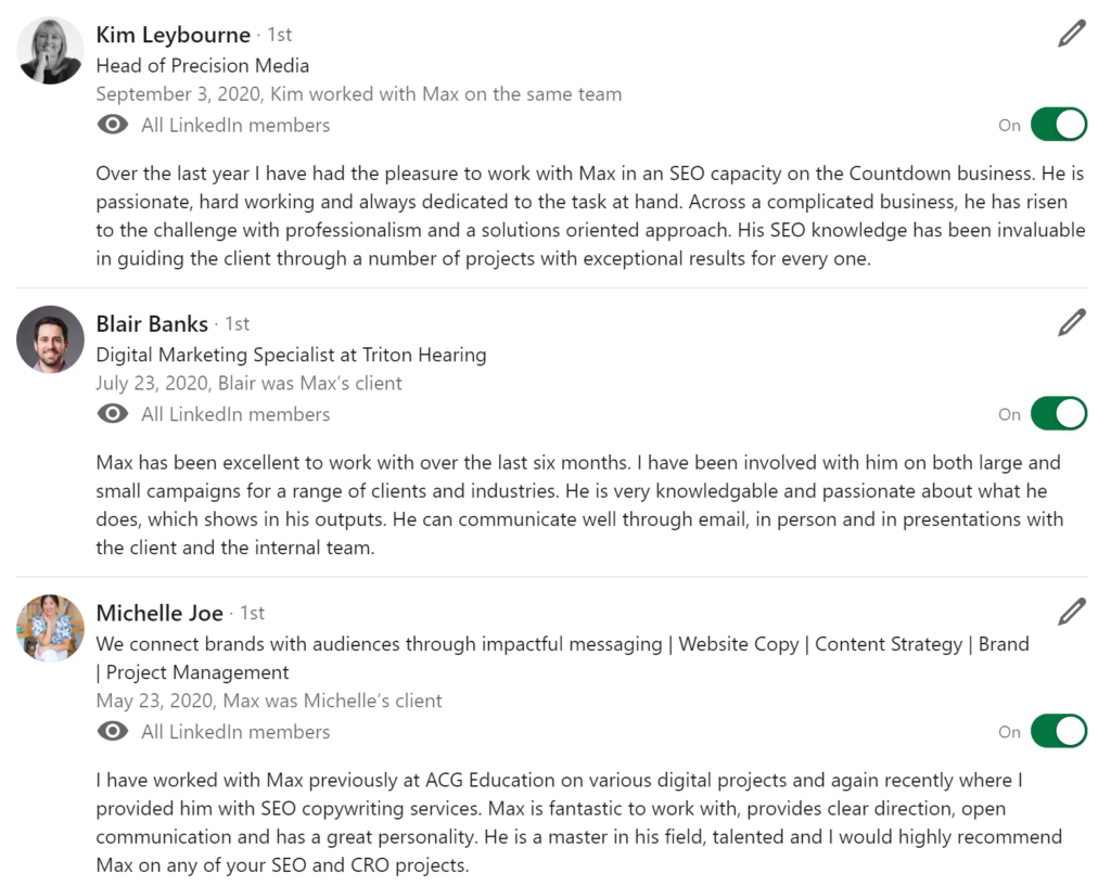 More testimonials can be found at my LinkedIn page